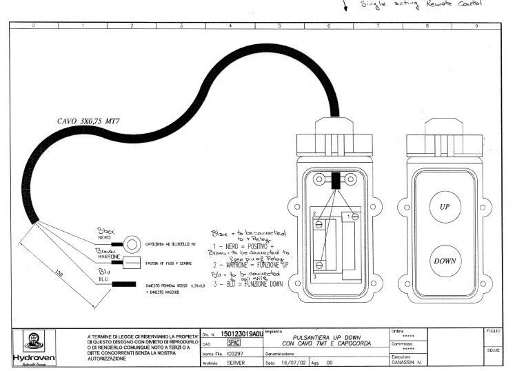 PENDANT: Power up (raise) Manual down (lower) hand held pendant controller with 4m cable